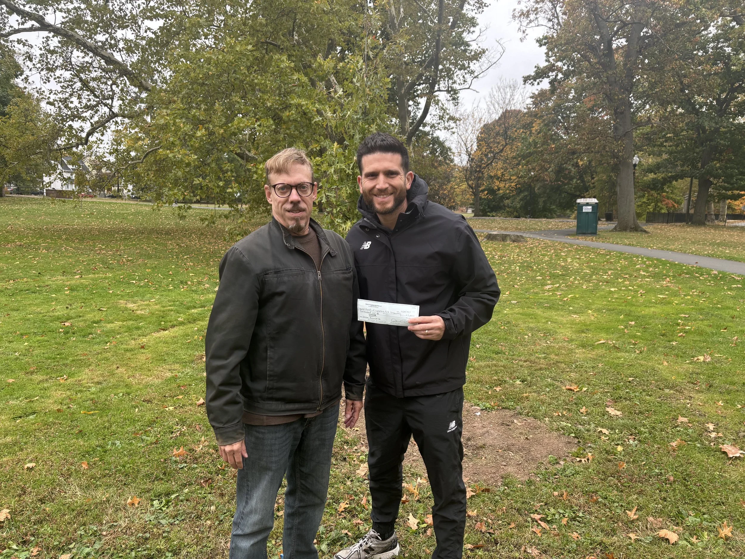 (Bloomfield, NJ, January 9, 2026) – The inaugural Booooo-mfield 5k Run held on October 18 generated a donation of $5,000 to the Friends of Watsessing Park Conservancy (https://www.friendsofwatsessing.org) from race organizer Trials of Miles Racing (https://trialsofmilesracing.com). Race Director Dave Alfano, who is also a Watsessing Heights resident, presented a check on October 28 to conservancy treasurer Tim Johnson. Proceeds from the run also benefitted the Bloomfield High School track and cross-country teams.